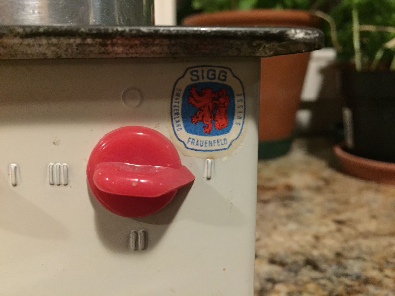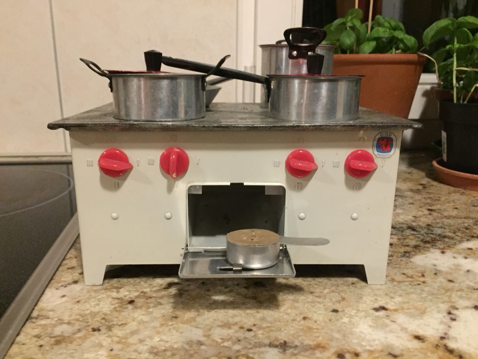 Sigg, weltbekannte wurde sie durch ihre qualitative hochstehenden Trinkflaschen aus Aluminium und Polypropylen. Doch wer weiss heute noch, dass Sigg während ihren Anfängen auch Puppenküchen herstellte. Auf die Idee kam Ferdinand Sigg, Mitgünder des Unternehmesn. Er absolvierte seine Lehre in einer Spielwarenfabrik als Metalldrücker. Genau so eine Küche steht noch immer bei meinem Nachbarn im Kinderzimmer. Diese wird bereits in der vierten Generation benutzt. Erwärmt wird die Platte mittels Rechaudkerze, welche im inneren des Spielzeugs hinein gesetzt wird.