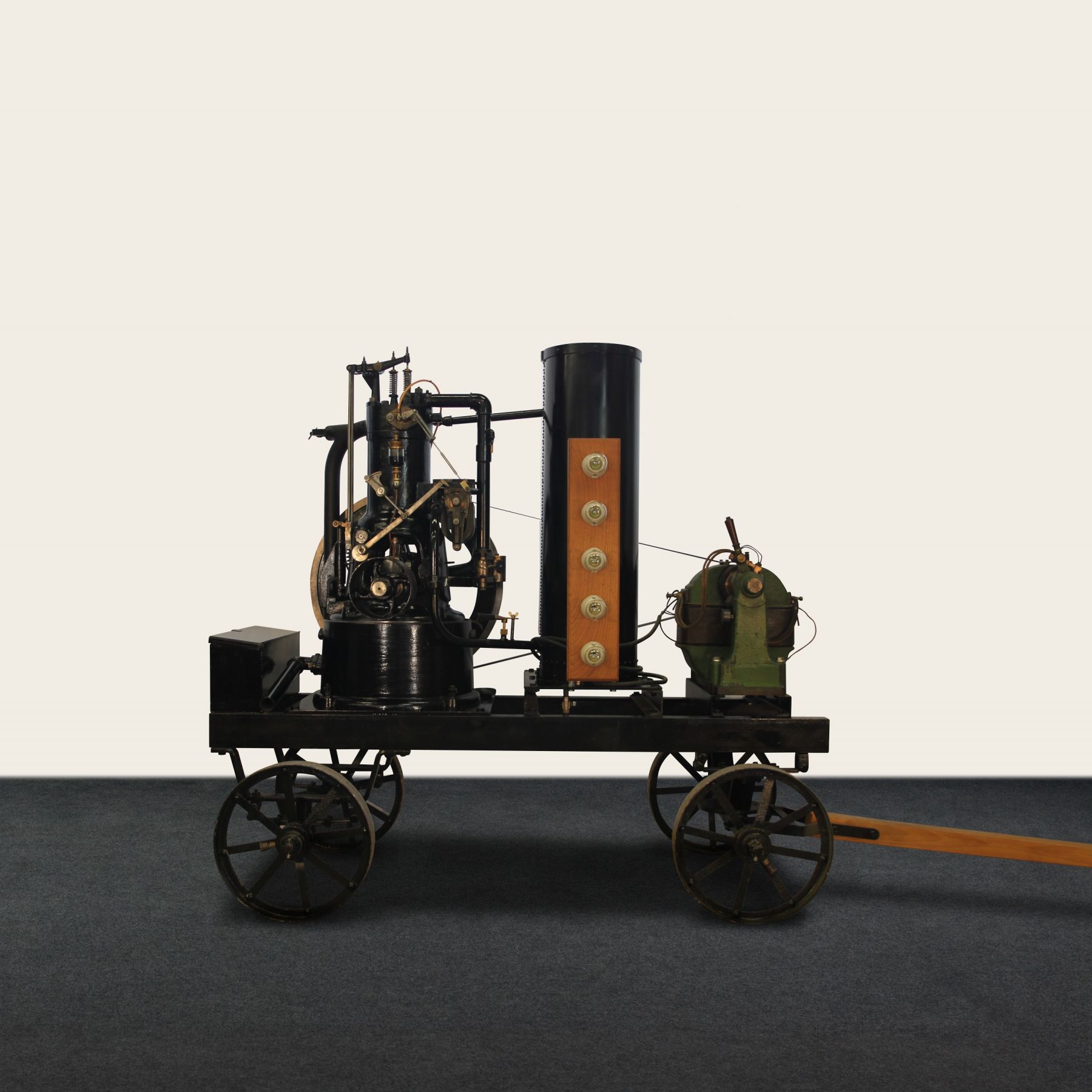 Dieser Stationärsmotor mit stehendem Zylinder gelangte 1986 in den Besitz eines privaten Sammlers aus Rafz. Ausser der Nr. 1411 fehlt jede Typenbezeichnung, es finden sich kaum Gebrauchsspuren am Motor. Recherchen des Sammlers haben ergeben, dass es sich um ein Einzelstück von Saurer handelt, ein Versuchsmotor, der um 1905 gebaut wurde und nie in Serie gegangen ist. Damit wurden vermutlich erstmals stehende Zylinder mit einer geringen Leistung erprobt. Wann und unter welchen Umständen der Motor das Saurer-Magazin verlassen hat, ist nicht bekannt. Zu Demonstrationszwecken hat der Sammler das 400 Kilogramm schwere Exemplar auf einen fahrbaren Rahmen montiert, wo es mit 300 Umdrehungen pro Minute einen Generator zur Stromerzeugung antreibt.