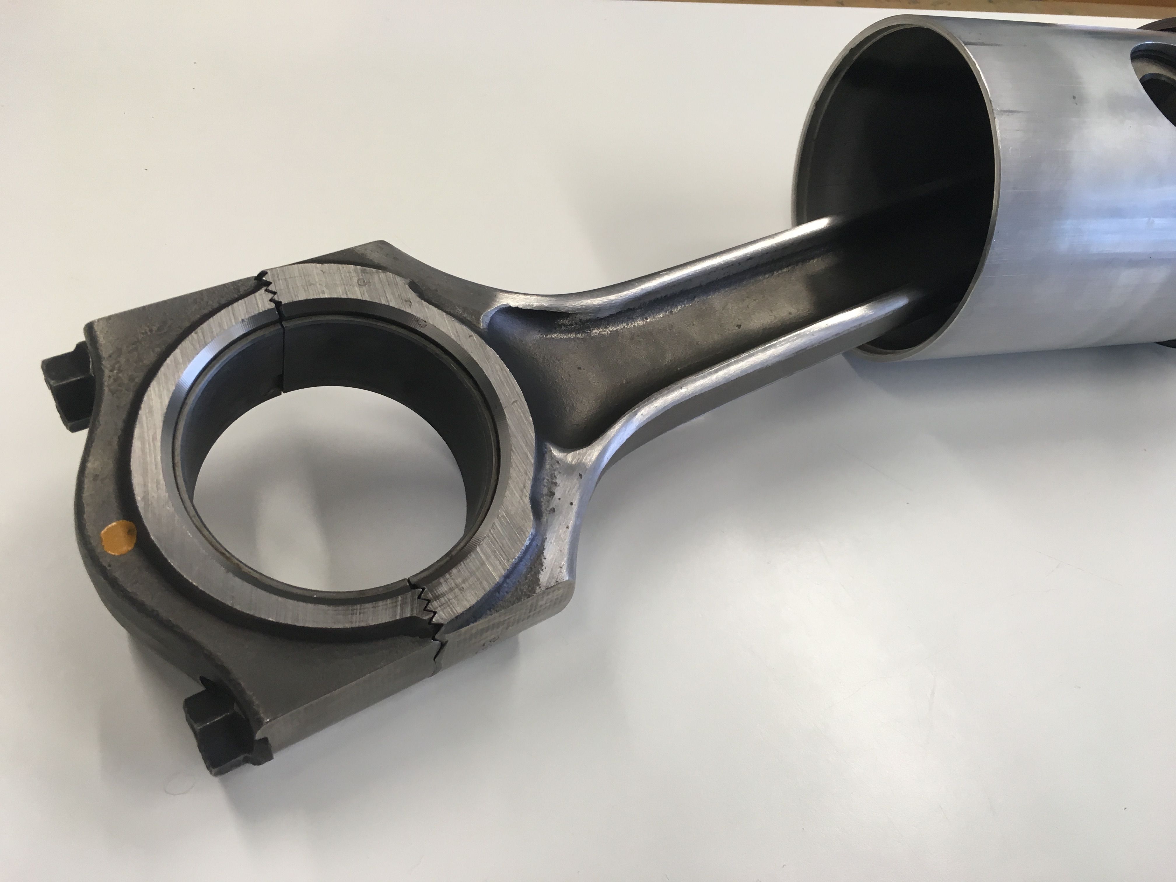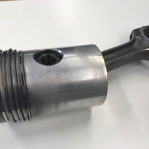 Dies ist ein Kolben eines Saurer 2DM-Lastwagens. Der 1959 zum ersten Mal gebaute Lastwagen wurde jahrelang für die Schweizer Armee hergestellt. Die Form der Kolben-Front wurde neu von Saurer entwickelt. Sie führt zu einer besseren und effizienteren Kompression. Dieser Kolben stammt aus der Sammlung eines Physiklehrers. Er war bereits in jungen Jahren ein Fan von Saurer und besitzt zahlreiche Erinnerungsstücke.