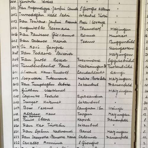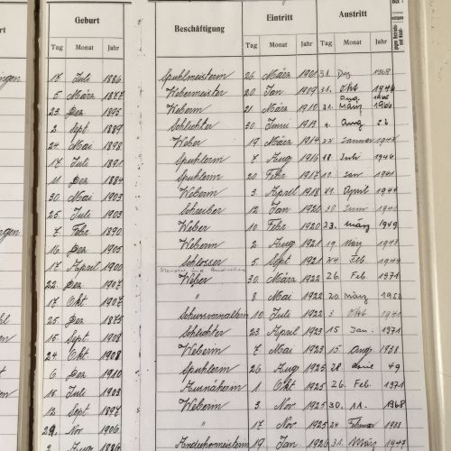 Es handelt sich um Verzeichnisse von Arbeiter und Angestellten sowie Heim- und Gastarbeiter der Weberei Matzingen aus den Jahren 1901 bis 1966. Sie zeigen auf, dass neben den Gastarbeitern aus Italien auch Arbeiter aus Istanbul angereist waren. Die Weberei Matzingen wurde 1861 als Spinnerei vom Textilunternehmer Max Lüthi gegründet. Ab dem Jahr 1897 bis zur Einstellung der Produktion 1970 gehörte die Weberei Matzingen der aus Zürich stammenden Familie Gyr. Ab den 50er-Jahren begann die Weberei sich u.a. auf elastische Wollstoffe für Skianzüge oder feine Wollschleier für Nonnen zu spezialisieren, um konkurrenzfähig zu bleiben. Doch schliesslich musste die Weberei Matzingen hauptsächlich aufgrund von Konkurrenzdruck die Produktion 1970 einstellen.