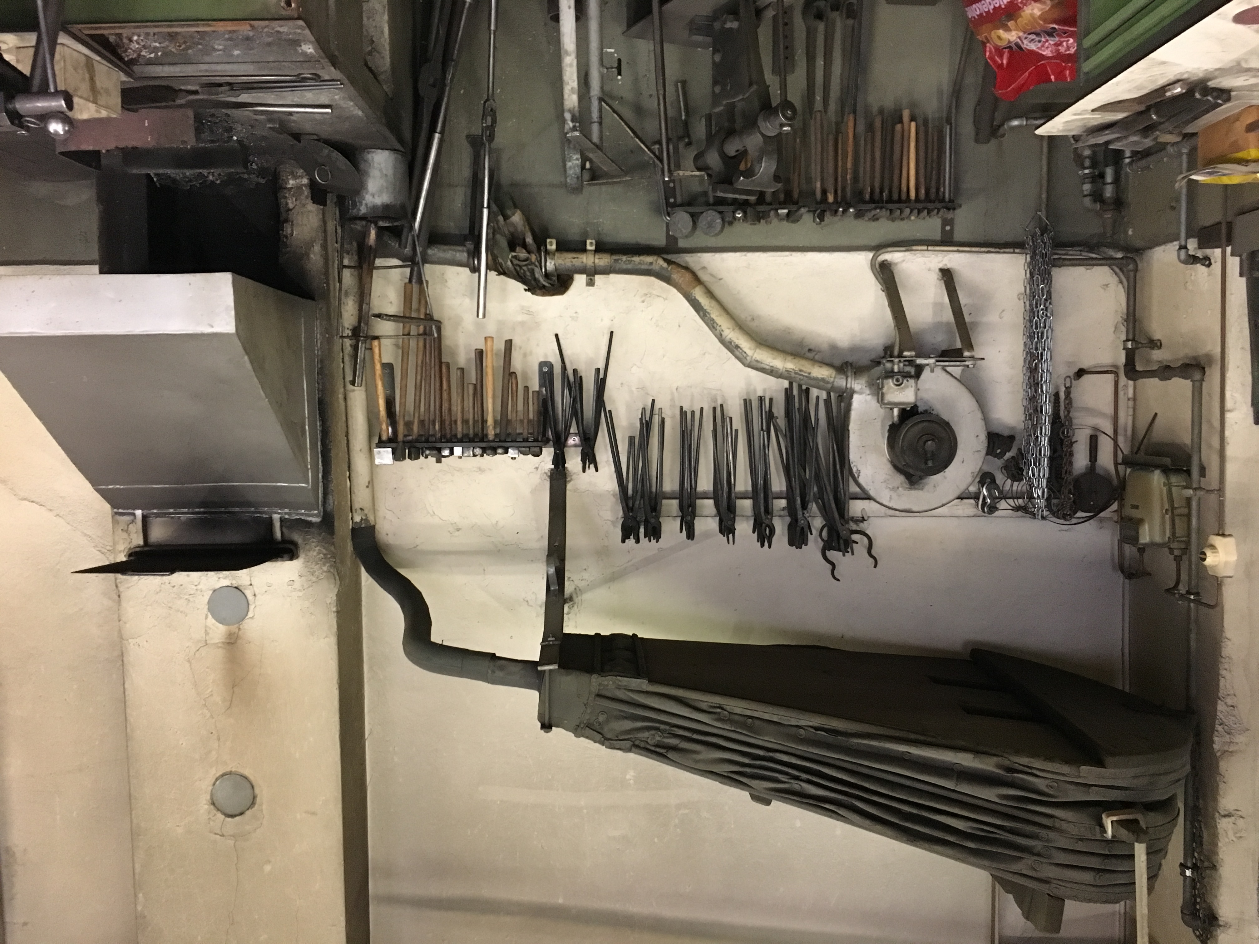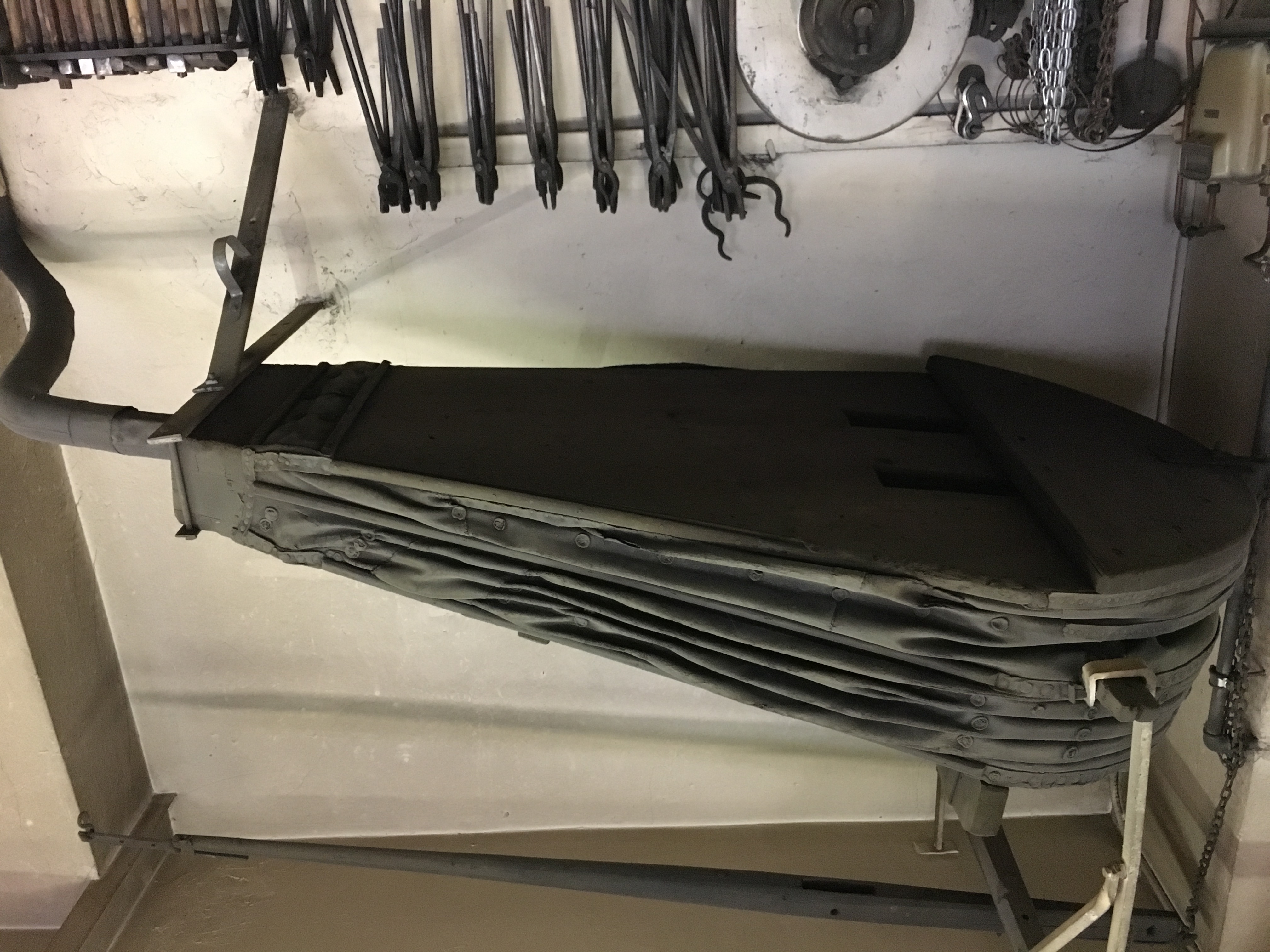 Dieser Blasebalg gehört zur Firmengeschichte der Friess AG und somit zur Geschichte des Firmengründers Karl Friess. Mit 26 Jahren ging Karl Friess nach Zürich und arbeitete dort als Jungschmied. Als er nach Münchwilen umzog übernahm er dort die Engelschmitte. Als 1907 ein Gebäude auf der gegenüberliegenden Strassenseite abbrannte, nahm Karl Friess die Gelegenheit wahr und kaufte den Bauplatz. 1908 wurde die alte Schlosserei an der Wilerstrasse gebaut. Der Blasebalg ist dort seither beim Huf- und Wagenschmied im Einsatz und wird auch heute noch verwendet. Er dient dazu, das Schmiedefeuer auf die nötige Temperatur zu bringen, um das Eisen zum Glühen zu bringen, damit es geschmiedet werden kann. Heute werden damit hauptsächlich Eisenstangen für den Strassenbau angefertigt und nachgespitzt.