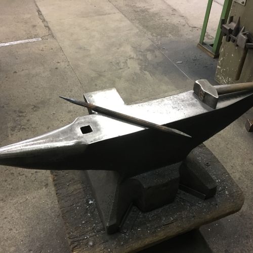 Dieser Amboss gehört zur Firmengeschichte der Friess AG und somit zur Geschichte des Firmengründers Karl Friess. Mit 26 Jahren ging Karl Friess nach Zürich und arbeitete dort als Jungschmied. Als er nach Münchwilen umzog, übernahm er dort die Engelschmitte. Als 1907 ein Gebäude auf der gegenüberliegenden Strassenseite abbrannte, nahm Karl Friess die Gelegenheit wahr und kaufte den Bauplatz. 1908 wurde die alte Schlosserei an der Wilerstrasse gebaut. Der Amboss ist dort seither beim Huf- und Wagenschmied im Einsatz und wird heute noch gebraucht. In frühen Jahren wurden damit vorwiegend Hufeisen gefertigt. Heute werden damit Eisenstangen für den Strassenbau zugespitzt.