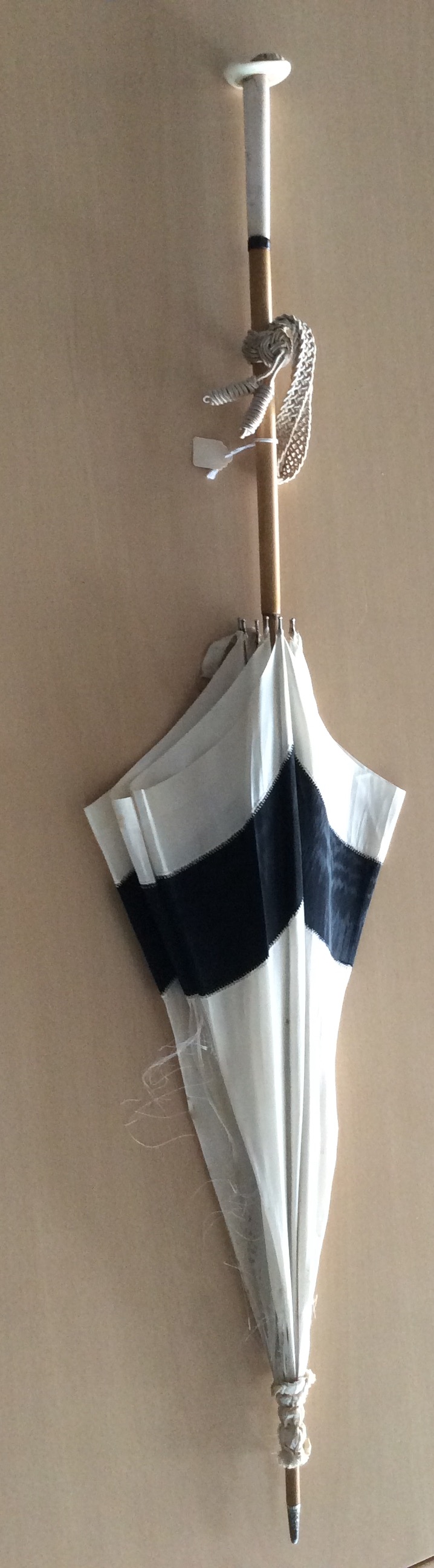 Die Frauenfelder Firma Glatz stellt schon seit über 120 Jahren Sonnenschirme her. Alles begann mit der Produktion von Handsonnenschirmen für Damen. Gänzlich unpopulär war der Gartenschirm oder Standschirm, da die meisten Gärten als reine Nutzgärten dienten. Die Schirme waren relativ einfach konstruiert und es wurde vor allem auf modische Details geachtet. Der Schirm war eine Art Statussymbol der bürgerlichen Frau. Hier abgebildet ist ein Seidenschirm mit Holzgriff und Eisenverstärkungen. Das Kopfende des Griffs ist mit einem Frauenkopf verziert.